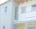 | | Wohnbau: Projekt: 2 Wohnhäuser mit Gesundheitszentrum, Östringen Architekt: Architekturbüro Buchmüller, Östringen Bei dem sehr offen gestalteten Objekt wurde ein nicht alltäglicher Mix an Materialien verbaut. - Dach und Teile der Decken sowie Wände in Holz